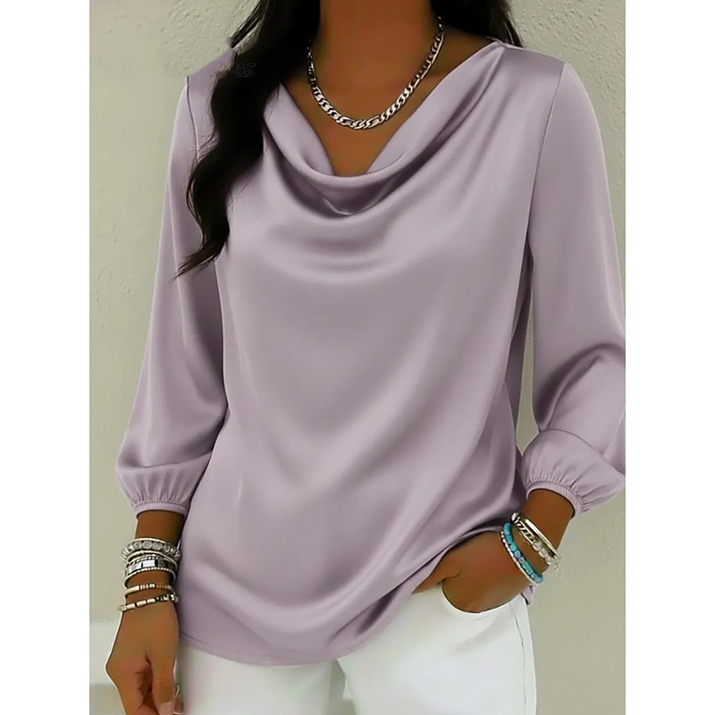 Women's Shirt Solid Color Elegant Vintage Stylish Long Sleeve Cowl Neck Regular Tops Daily Blue Yellow Red Purple Spring Fall Winter Spring, Fall, Winter, Summer