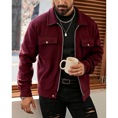 Herren Leichte Jacke Cargo-Jacke Freizeitjacke Urlaub Täglich Warm Tasche Herbst Winter Einfach Mode Klassisch Revers Regulär Schwarz Wein Hellgrau Jacken