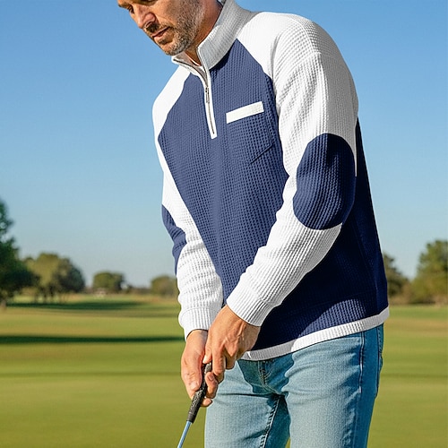 Per uomo Maglietta Polo con zip Maglietta tattica Camicia a Maniche Lunghe Manica Lunga Zip a un quarto Colletto fasciato Primavera Autunno Blocco di colori Quotidiano Casual Stile da Strada Tasca