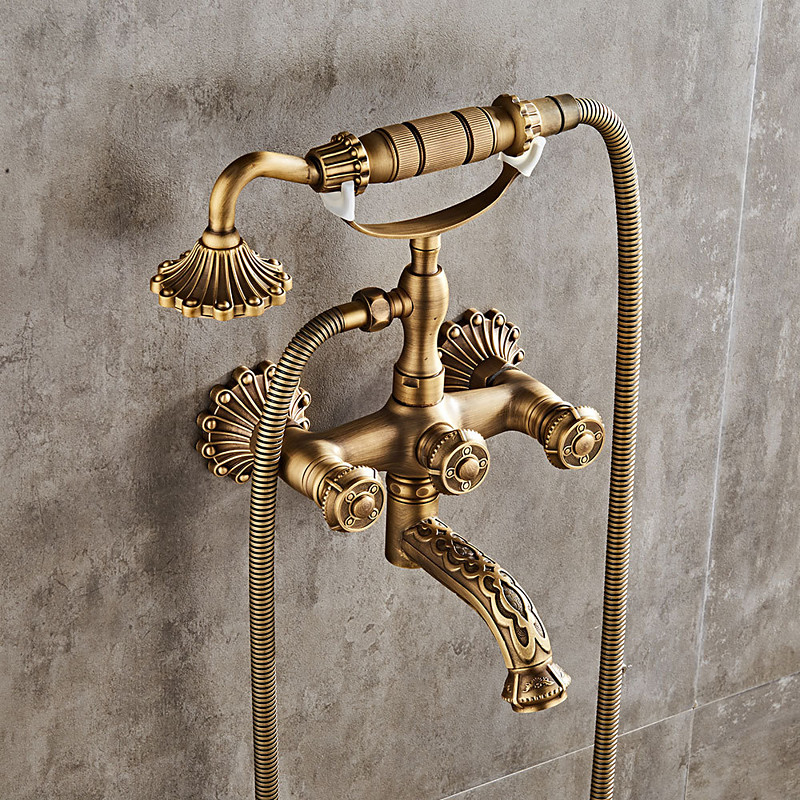 Vintage Shower System Faucet Set Wall Mounted, 360 Swivel Antique Brass Bathroom Shower Head Facuet Kit with Handheld Shower Head Sprayer Ceramic Valve Bath Mixer Tap