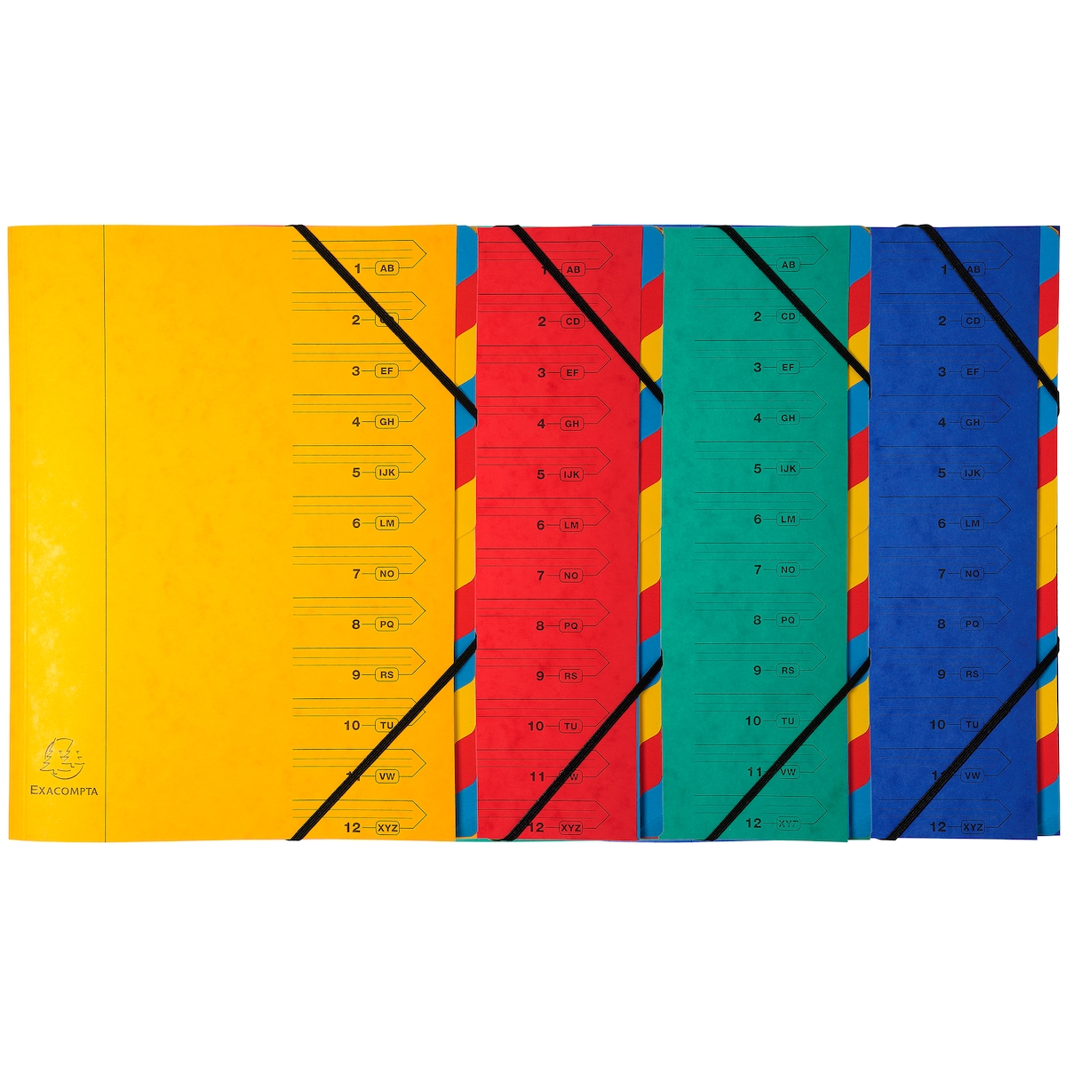 Exacompta Ordnungsmappe aus Manilakarton 400g/qm geheftet mit 12 Fächern und Gummizug, für Format DIN A4