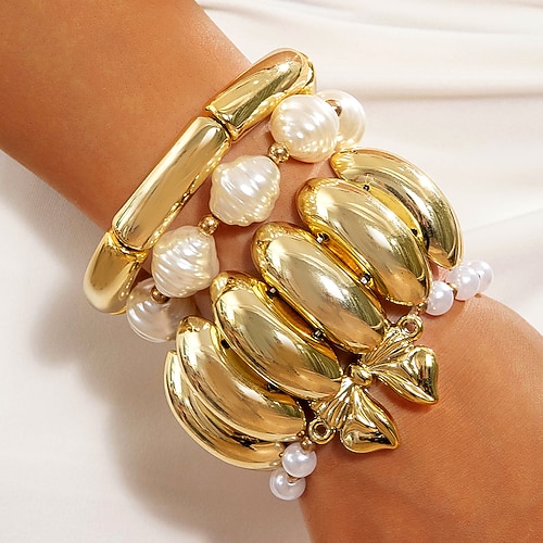 Carnival 2026 Accessori Samba del Carnevale di Rio Bracciali in Tonalità Oro con Perle per Donne - Set Impilabili con perle Barocche Bracciali Aperti e Charm a Cuore con Perline Costume per Festival