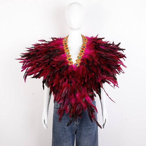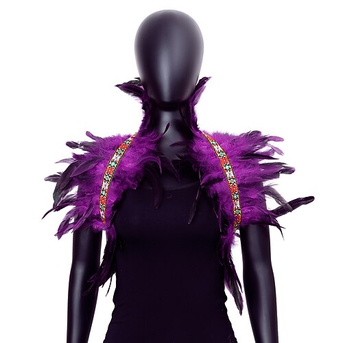 Accessori Samba del Carnevale 2026 Rio Carnevale Cappotto Sciarpa in Piume per Mardi Gras in Viola Verde Oro Poncho in Piume con Collare Gioiello per Donne Costume per Performance al Festival del