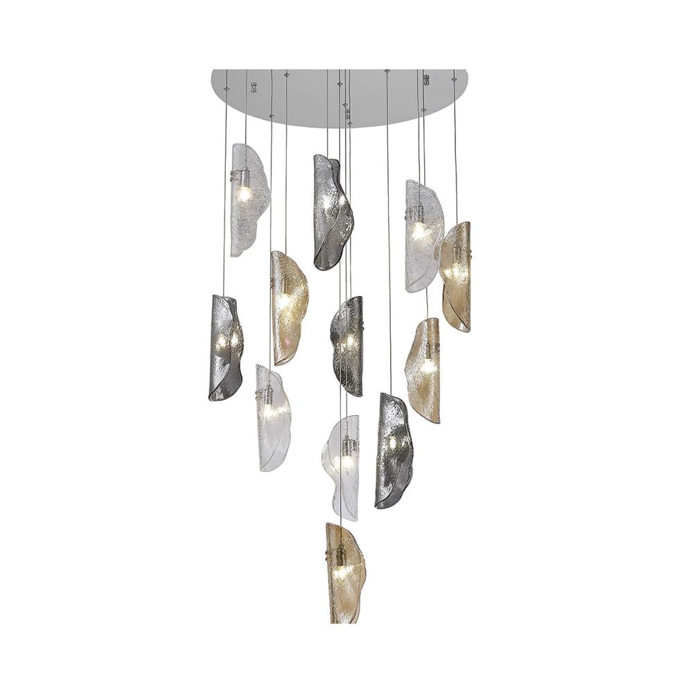 Osiris 80cm Ceiling Round 12 Light E14 Polished Nickel / Smoke Sculpted Glass Luxuria