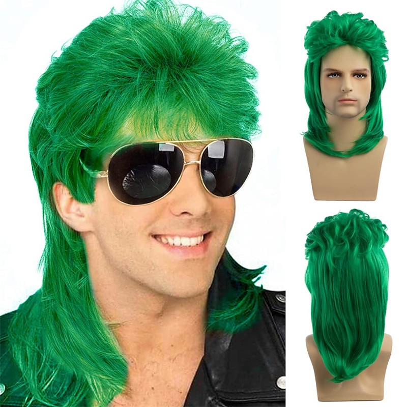 Green Mullet Wigs for Men 80s Costumes Fancy Party Accessory Cosplay 70s Rocker Hair Male Wig