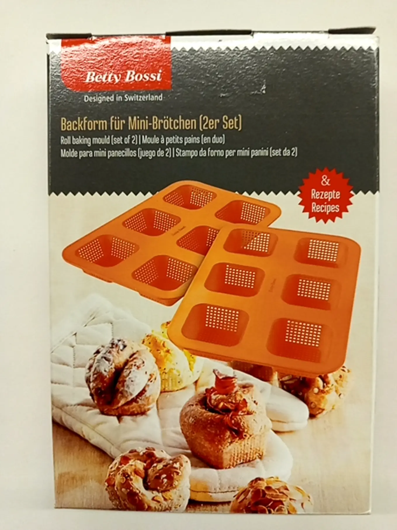 BETTY BOSSI Backform Mini-Brötchen 2er-Set Orange Silikon 25x17x3 cm Antihaft Elektrisch/Gas