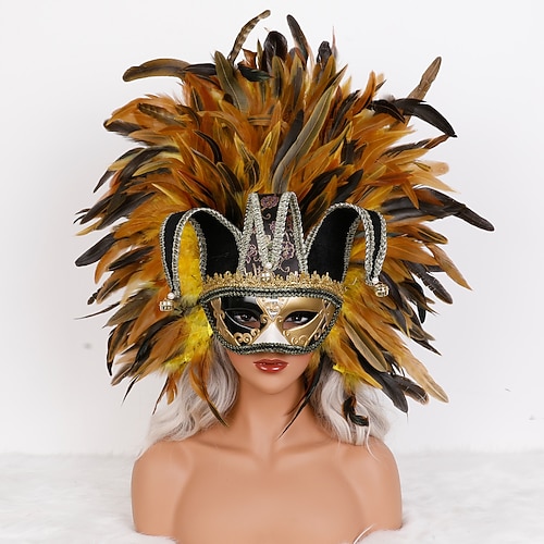 Carnival 2026 Carnival Mask Jolly Clown Venetian Carnival Mask Venetian Mask Feather Adults' Women's Halloween Carnival Mardi Gras Carnival Party Carnival of Venice Easy Carnival Costume Dress Up