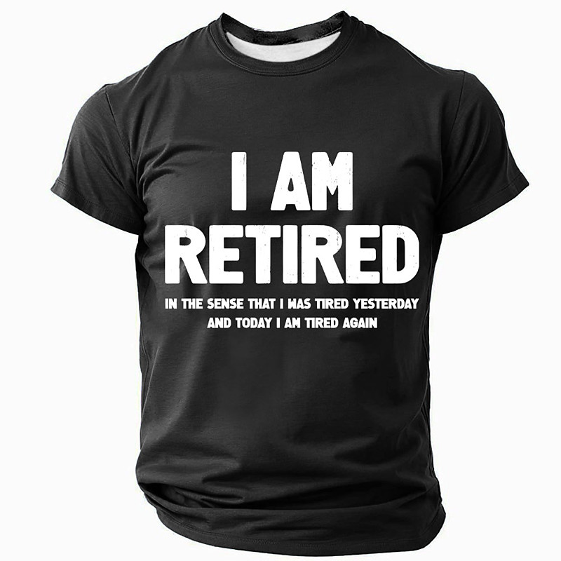 Men's Funny Graphic T-Shirt with Retirement Wordplay: 'I Am Retired, Tired Again' Short Sleeve Tee