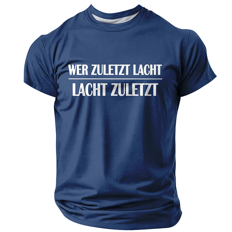 Mens T-Shirt Graphic Short Sleeve He Who Laughs Last Laughs Best German Proverb Tee