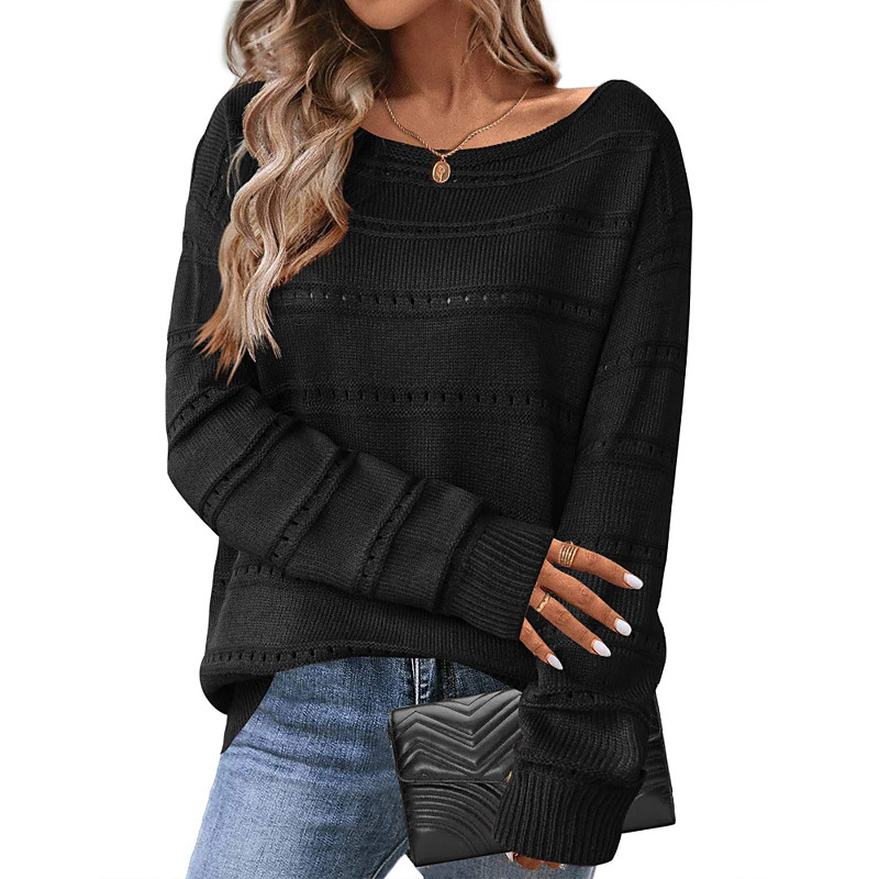 Women's Sweater Pullover Fashion Solid Color Ribbed Crew Neck Hollow Out Knitted Long Sleeve Long Tops Knit Outdoor Daily Holiday Black Fuchsia Fall
