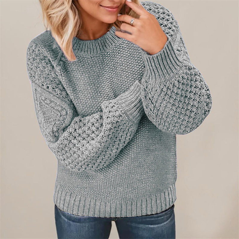 Women's Sweater Pullover Streetwear Casual Solid Color Crew Neck Hollow Out Knitted Long Sleeve Regular Tops Knit Daily Holiday Going out Blue Pink Spring Fall