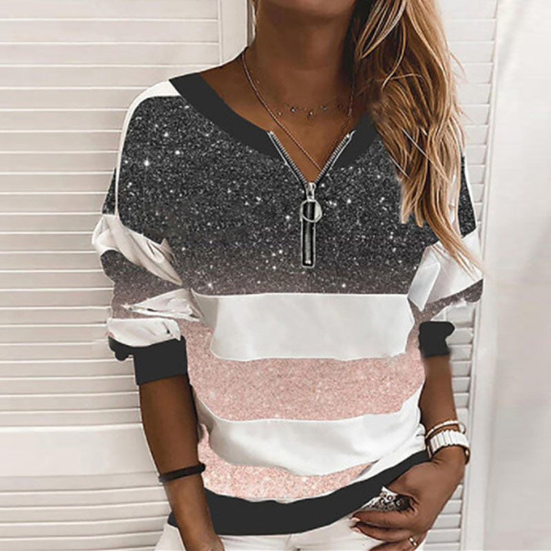Women's Pullover Sweatshirt Zip Up Sweatshirts Polka Dot Color Block Plain Elegant Warm Fashion Long Sleeve Crew Neck Regular Tops Home Work Street Patchwork Print Quarter Zip Blue Black Red Fall