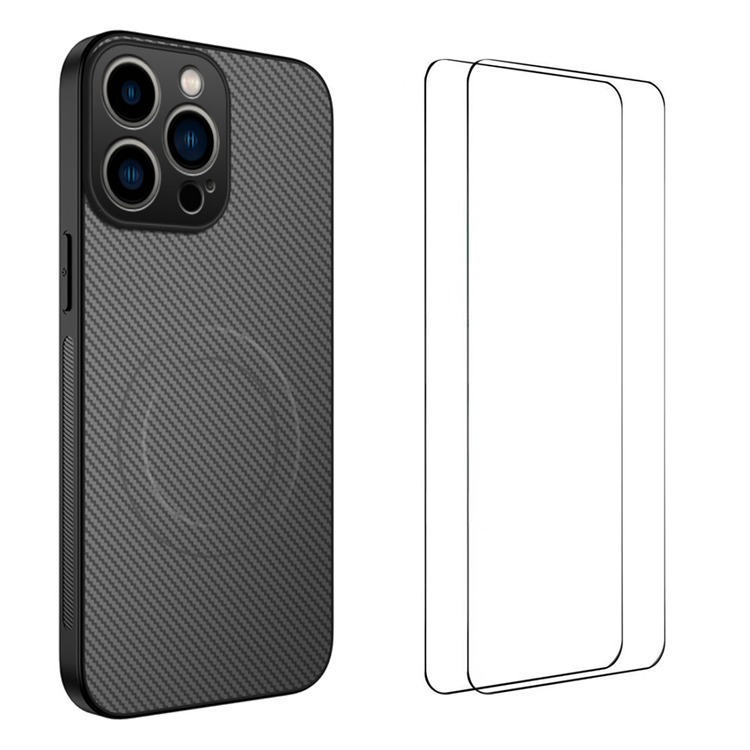WANLONFENG Mobilskal till iPhone 15 Pro MagSafe + [2-Pack] Härdat Glas