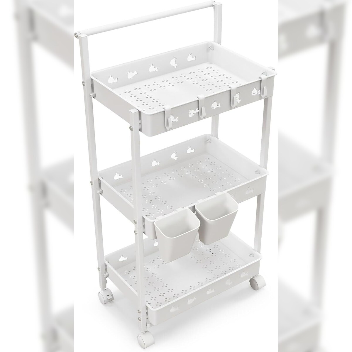 COSTWAY 3-stöckiger Rollwagen, Servierwagen mit Rädern, Küchenwagen mit 2 Hängebechern & 4 Haken & Griff