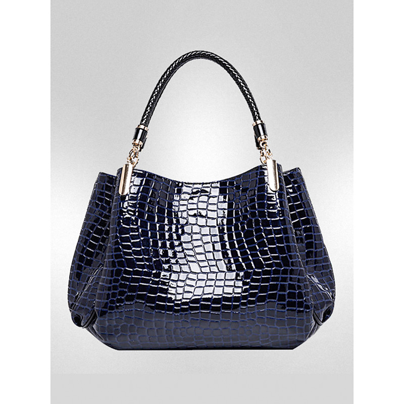 Women's Christmas Croc-Embossed Faux Leather Handbag, Holiday-Ready, Available in Red, Blue, and Black – Stylish Winter Shoulder Bag with Adjustable Strap and Gold Accents
