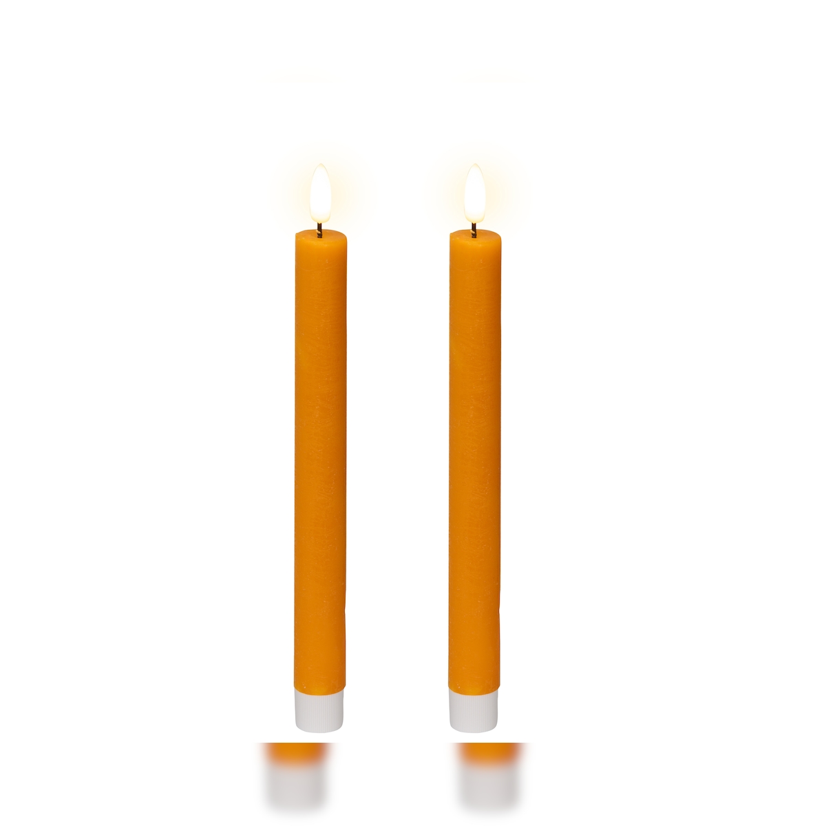 Lumineo 2 LED Kerzen mit Timerfunktion 24,5cm Wachs - Echtwachskerzen flackernde Flamme batteriebetrieben Wachskerzen Stabkerzen Orange Warmweiß