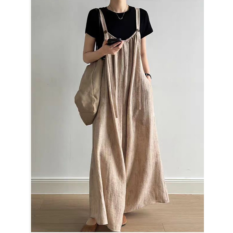 Women's Jumpsuits Casual Summer Solid Color V Neck Holiday Daily Going out Wide Leg Loose Fit Spaghetti Strap Khaki 3XL