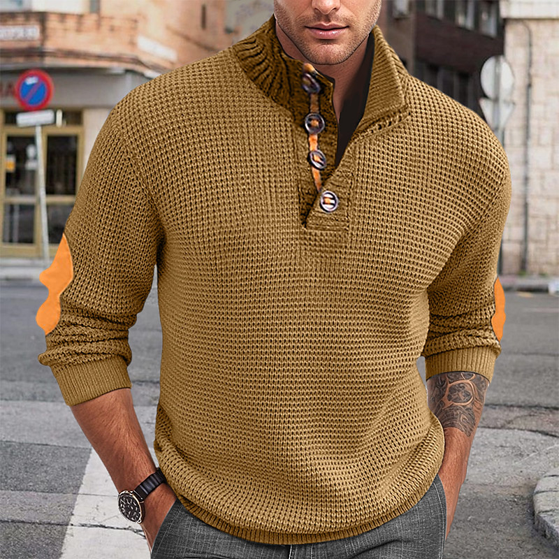 Men's Pullover Sweater Jumper Knit Regular Tops Color Block Buttons Solid Color Polo Collar Vintage Daily School Home Clothing Apparel Spring Fall Blue Brown S M L