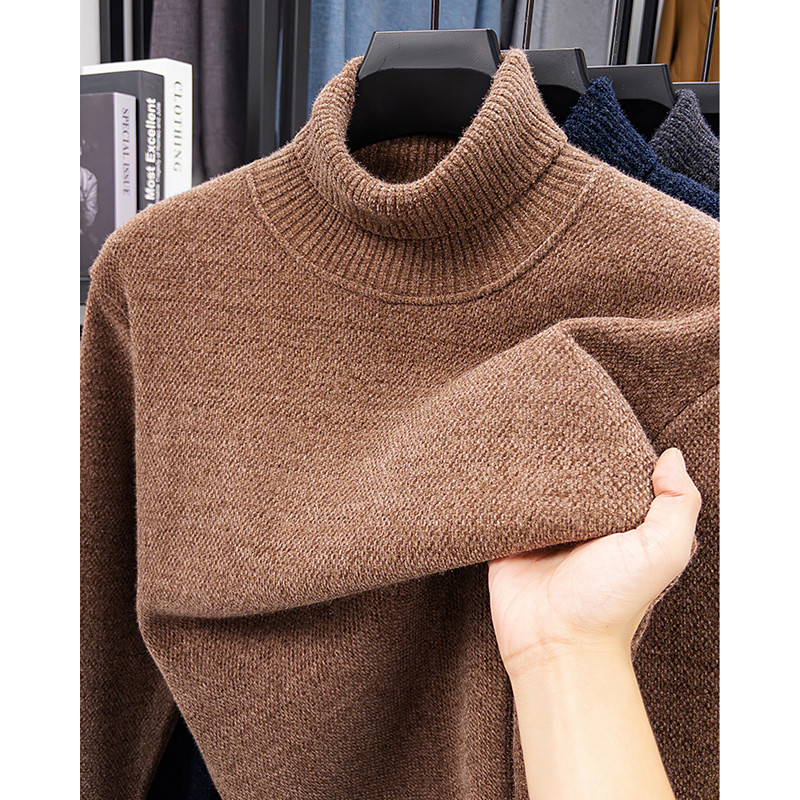 Men's Wool Sweater Knit Sweater Knitted Pullover Ribbed Knit Regular Tops Knitted Plain High Neck Fashion Streetwear Daily Wear Going out Clothing Apparel Fall Winter Blue caramel S M L