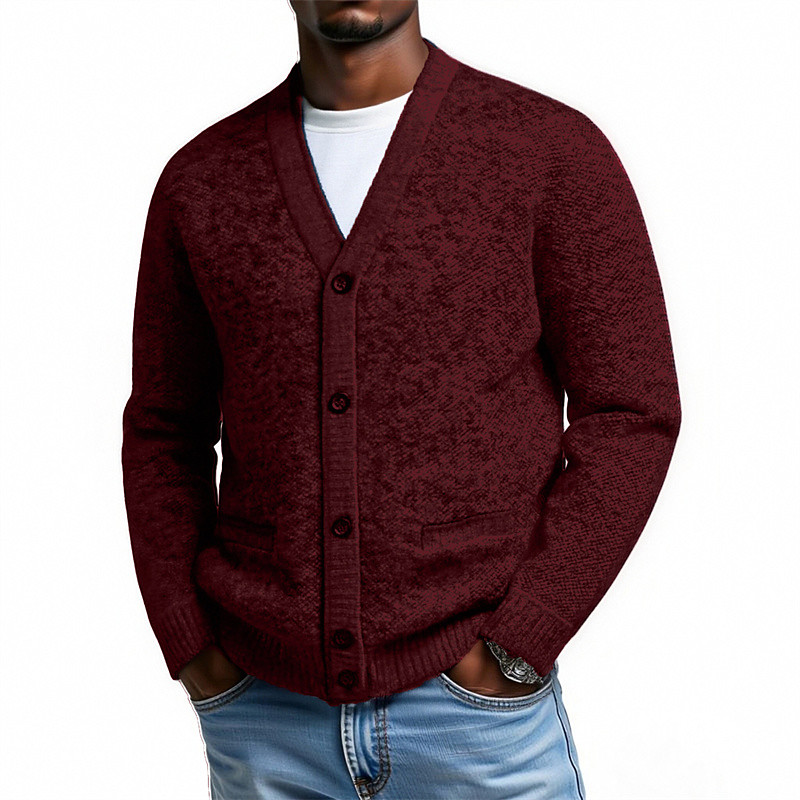 Men's Sweater Cardigan Sweater Cardigan Ribbed Knit Regular Tops Buttons Plain V Neck Fashion Streetwear Vacation Casual Clothing Apparel Fall Winter Burgundy Blue S M L