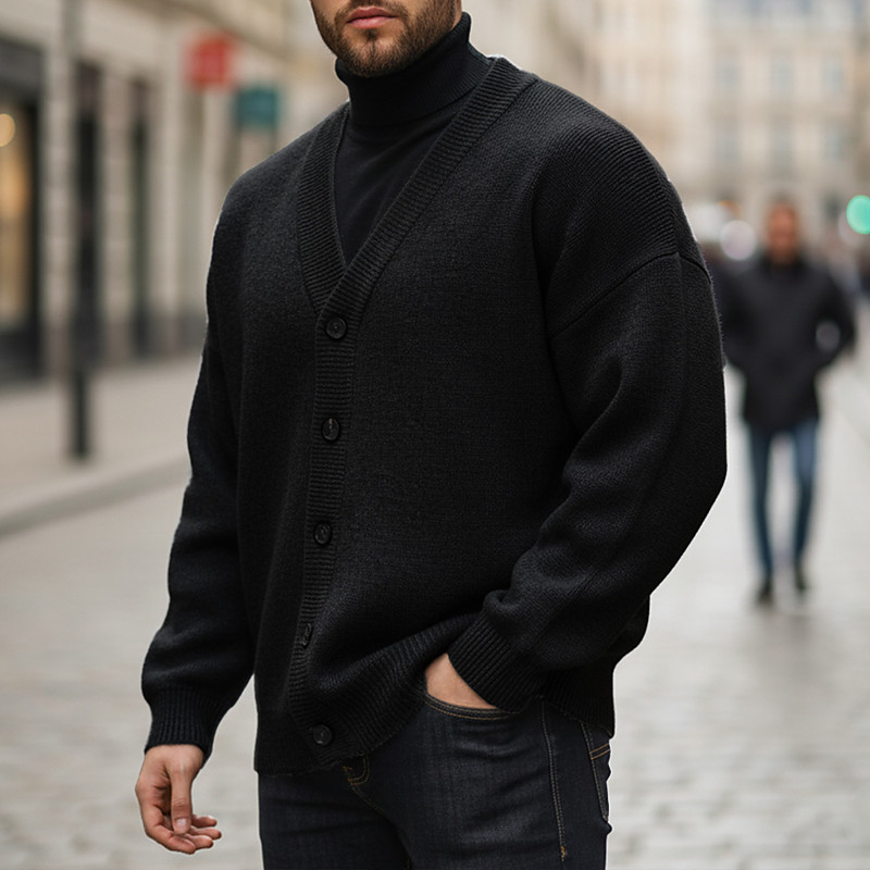 Men's Cardigan Sweater Cropped Sweater Knit Sweater Ribbed Knit Regular Tops Button Up Plain V Neck Fashion Classic Vacation Daily Wear Clothing Apparel Fall Winter Black Navy Blue M L XL