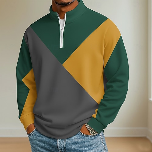 Per uomo Blocco di colori Geometrico Polo Manica Lunga Colletto Mao Athleisure Vacanza Athleisure Casual Quotidiano Stampa 3D Blocco di colore Primavera Autunno Blu Bianco Verde