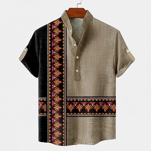 Per uomo Motivo Geometrico Etnico Camicia Camicia button-down Manica Corta Vintage Retrò Ferie Casual Quotidiano Estate Primavera Colletto Mao Colletto Henley Stampa 3D Camicia tipo lino Cáqui Escuro