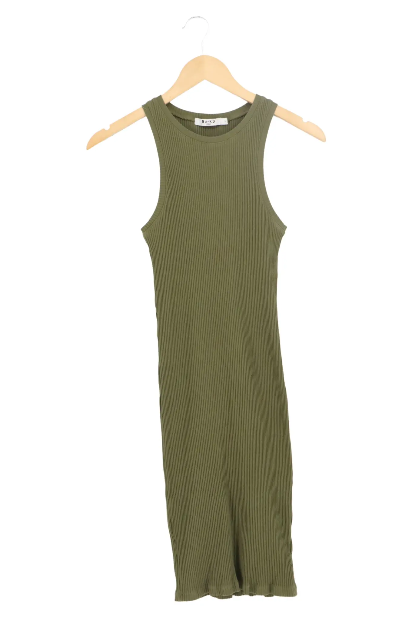 NA-KD Etuikleid Damen Gr. S Oliv Midi Baumwolle Stretch