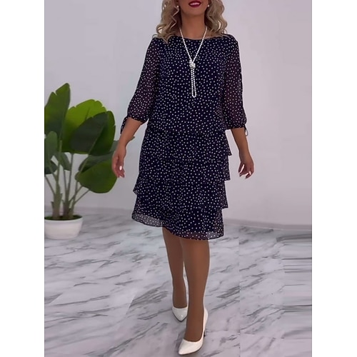 Per donna Mini Abito Abito a trapezio Casual Quotidiano Vestibilità regolare A Pois Manica 3/4 Girocollo blu navy Nero Verde Estate Primavera Autunno