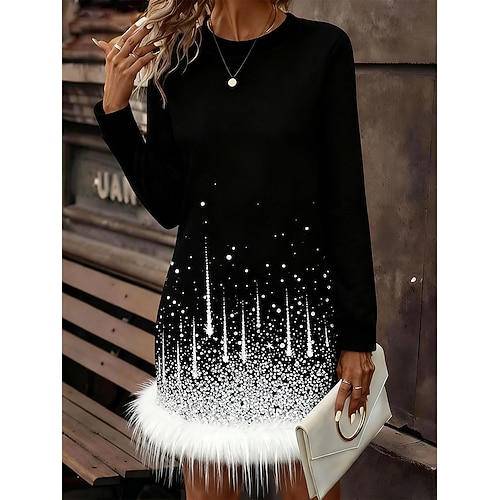Per donna Mini Abito Vestito Casual Abito Invernale Tubino Elegante Moda Quotidiano All'aperto Vacanza Vestibilità regolare Grafico Galassia Manica Lunga Girocollo Nero Blu marino Verde Viola scuro