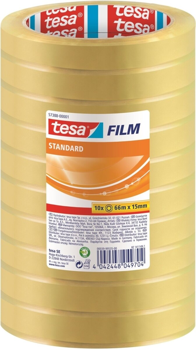Klebefilm tesafilm standard 15mmx66m transparent 10 Rollen Packung mit 12 Stück