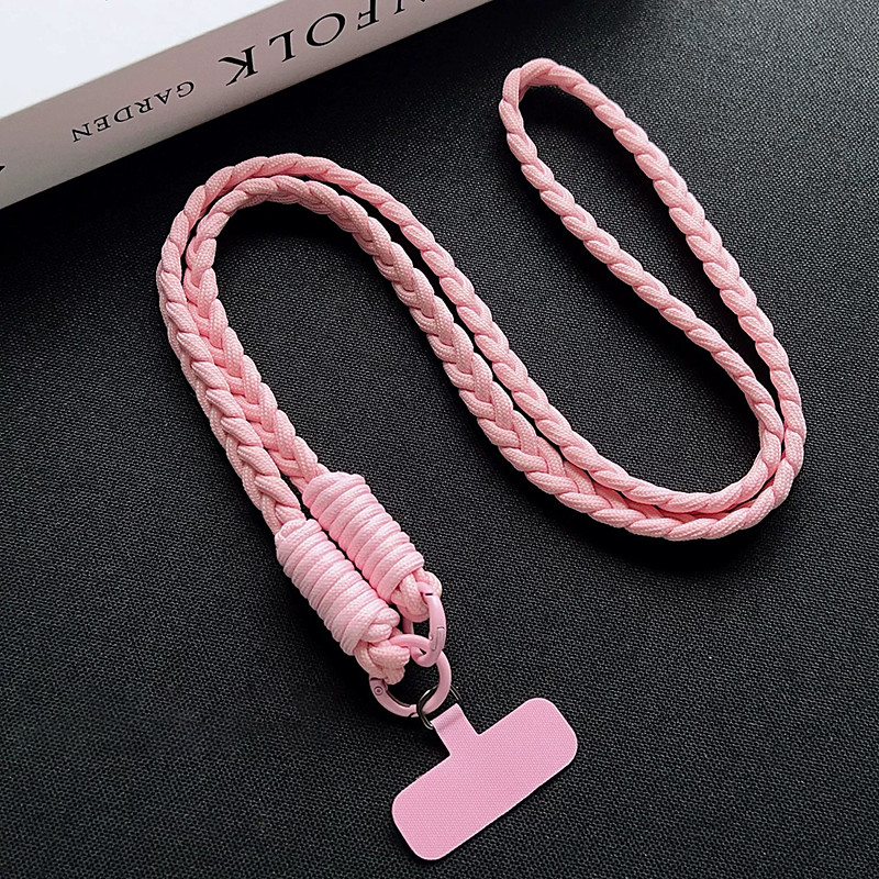 Fashion colored three strand braided rope for girls diagonal cross strap rope anti loss and sturdy hanging strap keychain mobile phone solid color hanging rope