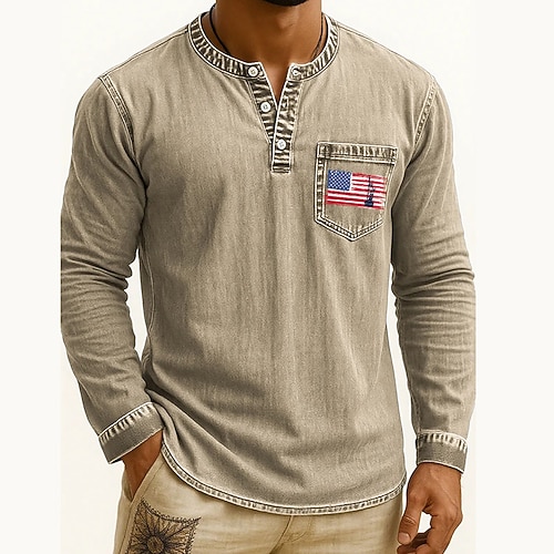 Herren Henley Hemd T-Shirt Langarmshirt Langarm Henley Herbst Winter Flagge Retro Mode Designer Mode Jahrgang Urlaub Straße Ausgehen Dunkel Braun Marineblau Schwarz Top T-Shirt für Herren