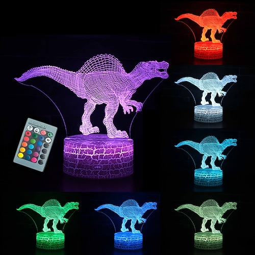 Dinosaurier-Nachtlicht für Kinder 3D-Illusions-Nachtlampe 16 Farben wechselnd mit Fernbedienung Raumdekoration Geschenke für Kinder Jungen Mädchen