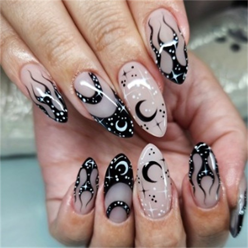 Halloween Fake Nail Snake Spider Pattern Almond False Nail Tip Full Cover Wearable French Fake Nail Patch Halloween Gifts