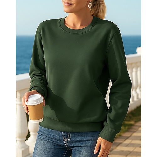 Per donna Felpa pullover Top casual Manica Lunga Top Athleisure Tinta unita All'aperto Vacanze abbigliamento sportivo Abbigliamento sportivo Aalbicocca Nero Verde militare