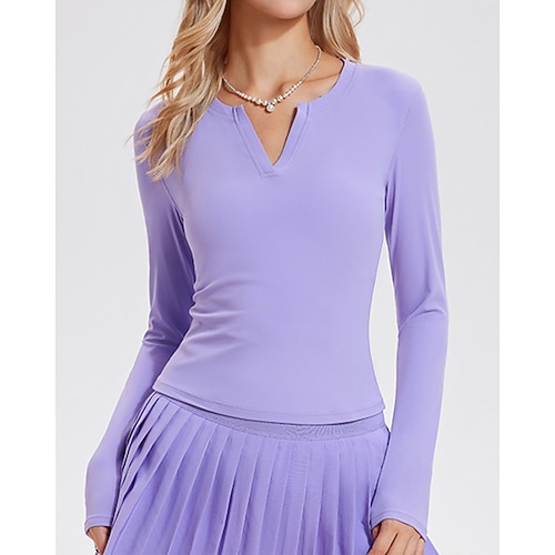 Per donna Tinta unita Maglia da tennis Top sportivo Elegante Elastico Traspirante Golf Pickleball Yoga Scollo a V Top Inverno Nero Bianco Giallo Abbigliamento da tennis