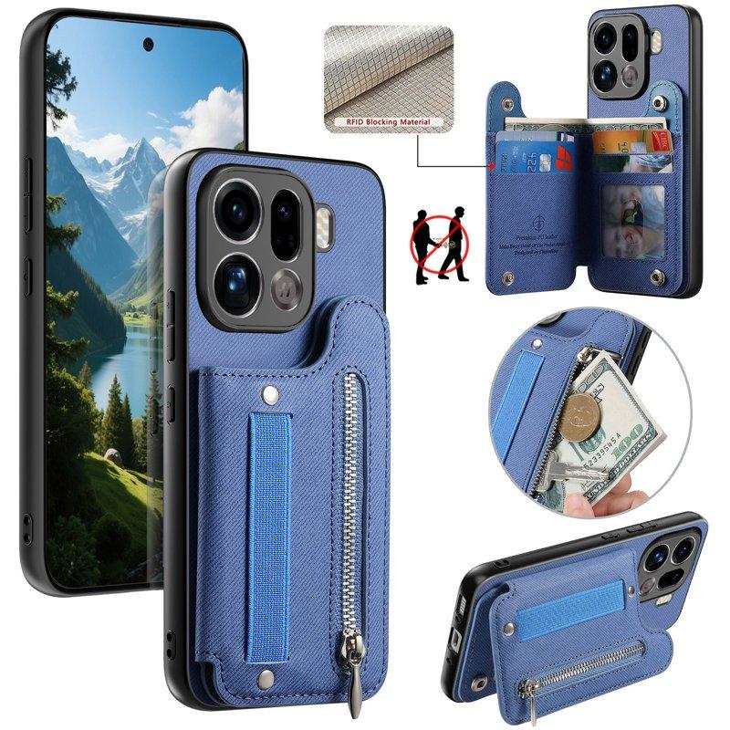 Oppo Find X9 Pro 5G Plånboksfodral Konstläder RFID Skydd - Blå