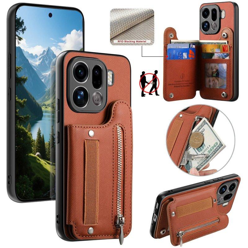 Oppo Find X9 Pro 5G Kortfack Plånboksfodral Konstläder Med Dragkedja - Brun