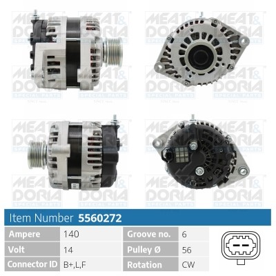 Laturi 14V 140A Meat & doria 5560272 - chevrolet captiva, orlando, opel antara a - OE 04818330, 04819446, 13 501 719