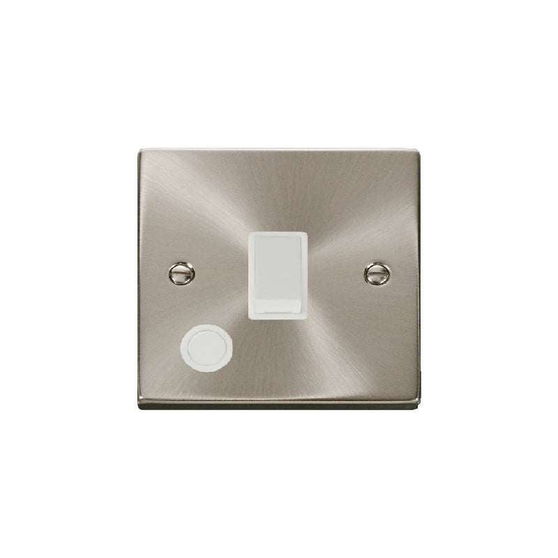 Click Deco 20A 1 Gang DP Switch With Flex Outlet Satin Chrome Insert White