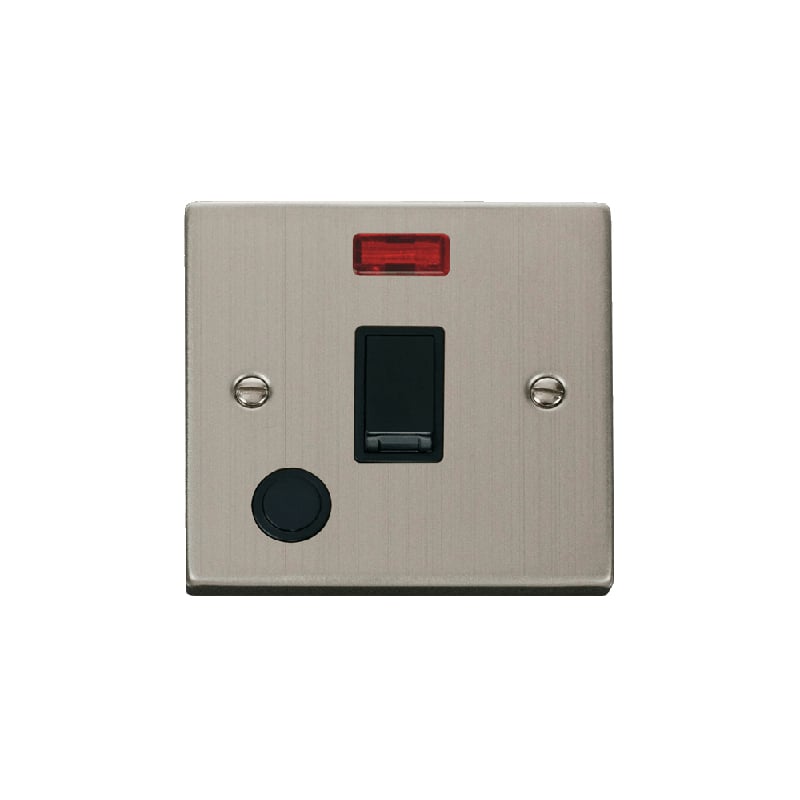 Click Deco 1 Gang 45A Double Pole Switch Stainless Steel Insert Black