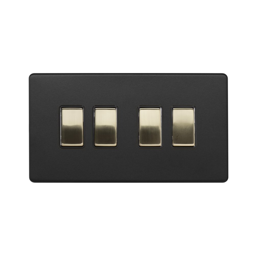 Soho Lighting Matt Black & Brushed Brass 10A 4 Gang Intermediate Switch Black Insert Screwless