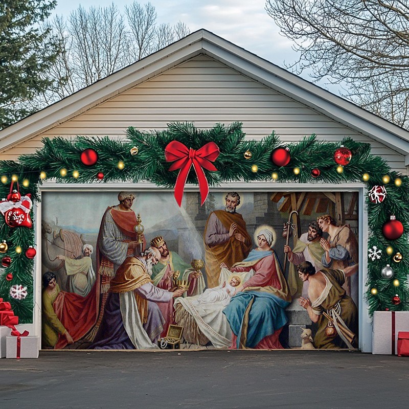 Christmas Outdoor Garage Door Cover Nativity Scene Birth Large Tapestry Backdrop Holiday Party Wall Decoration For Outdoor Garage Door Home Christmas Festival Celebration Decor