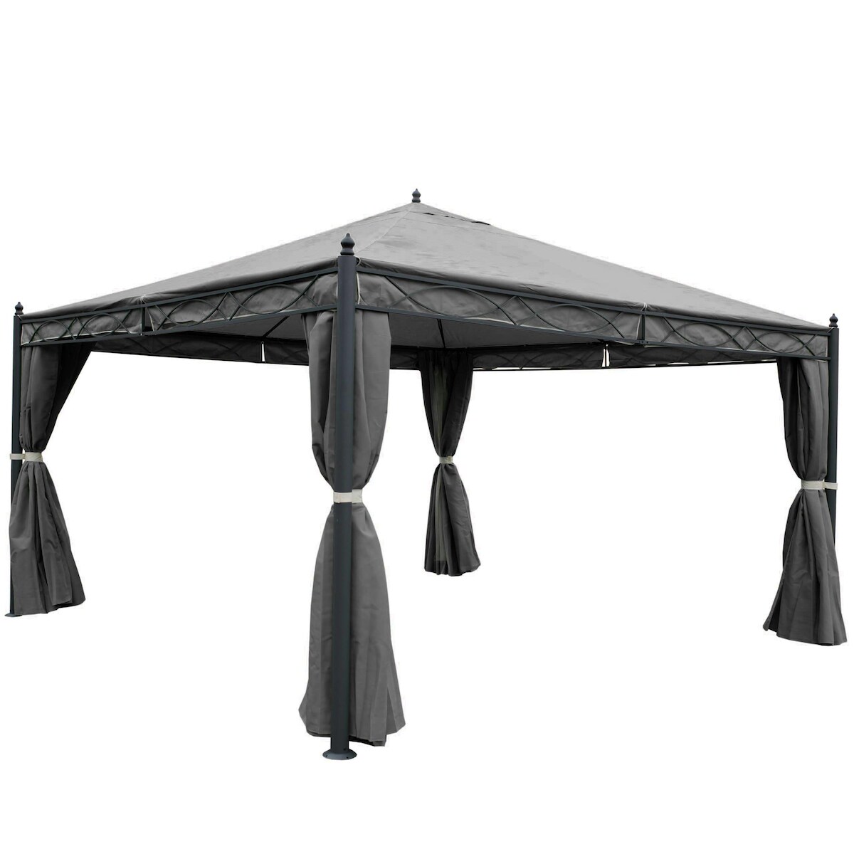 Mendler Pergola Cadiz, Garten Pavillon, stabiles 7cm-Gestell mit Seitenwand + Moskitonetz ~ grau 4x4m