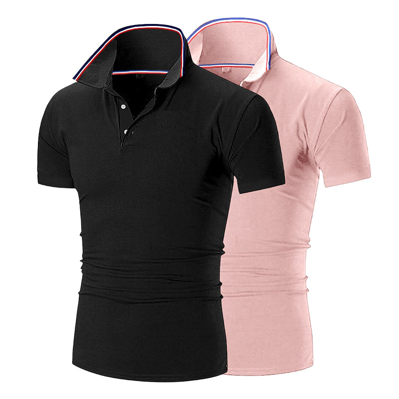 2 Piece Men's Golf Shirt Pique Polo Shirt Business Casual Ribbed Polo Collar Short Sleeve Fashion Basic Solid Color 2 Pcs Buttons Summer Spring Fall All Seasons Golf Shirt