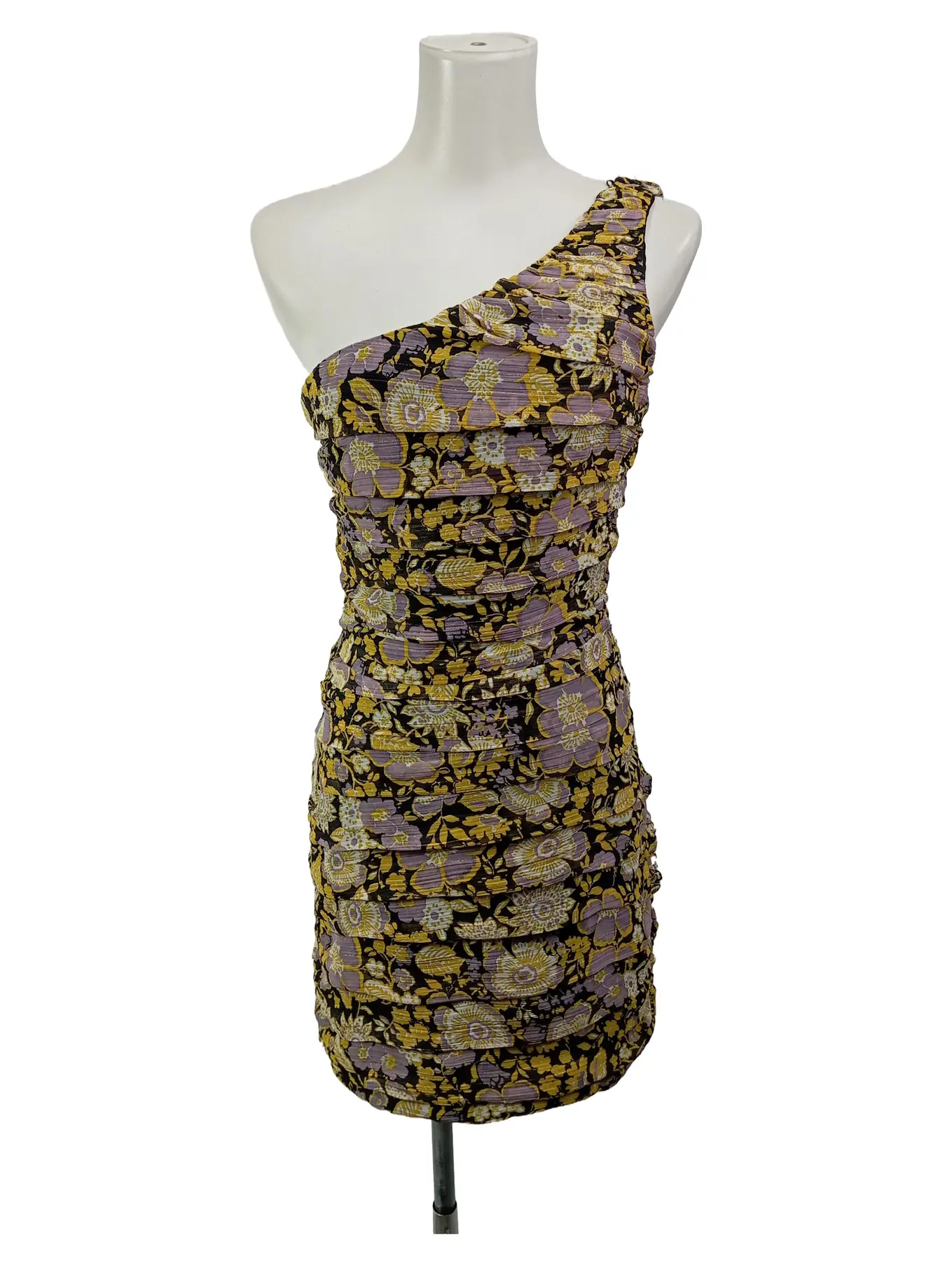 ZARA Asymmetrisches Kleid 36 S Schwarz Gelb Lila
