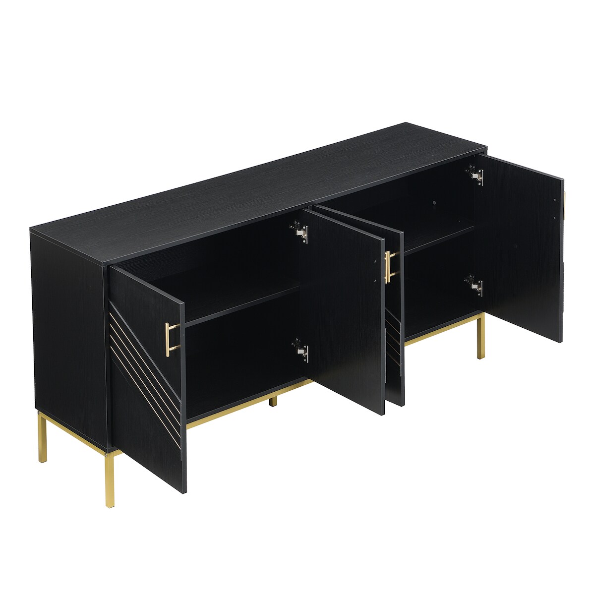 OKWISH Sideboard 160x40x80 cm Schwarz-Holz MDF Kommode Vier Türen Stauraumschrank mit Einlegeböden Metallgriffe Wohnzimmer Esszimmer Flur