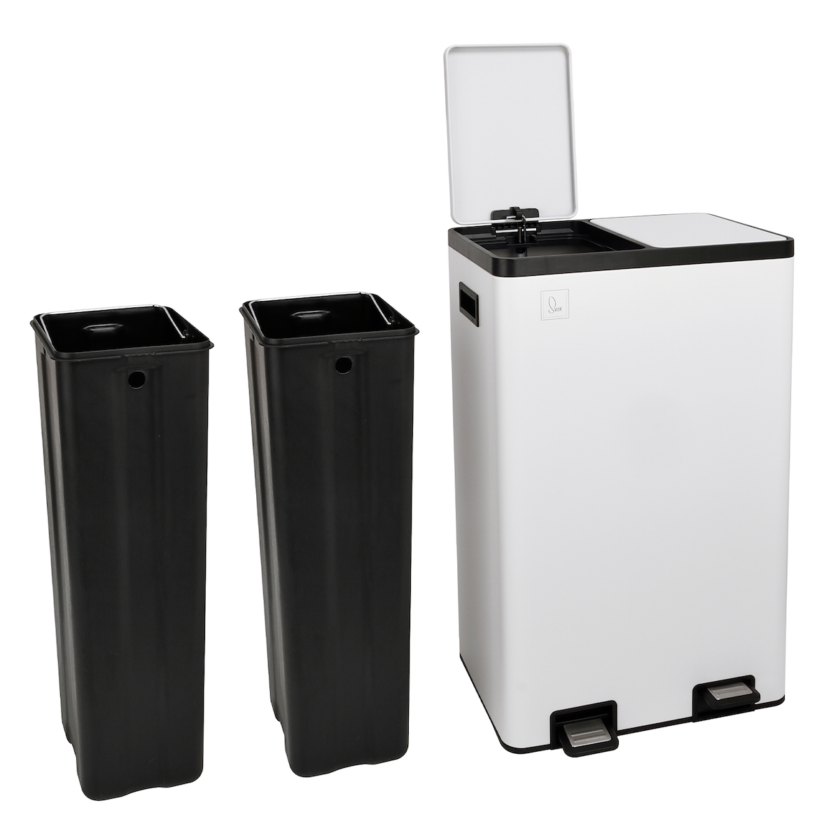 SVITA TMH2X30 Mülleimer 60L Mülltrennsystem 2 Fächer 2x30L Softclose-Deckel Pedal versteckbar Kunststoff Inneneimer Weiß