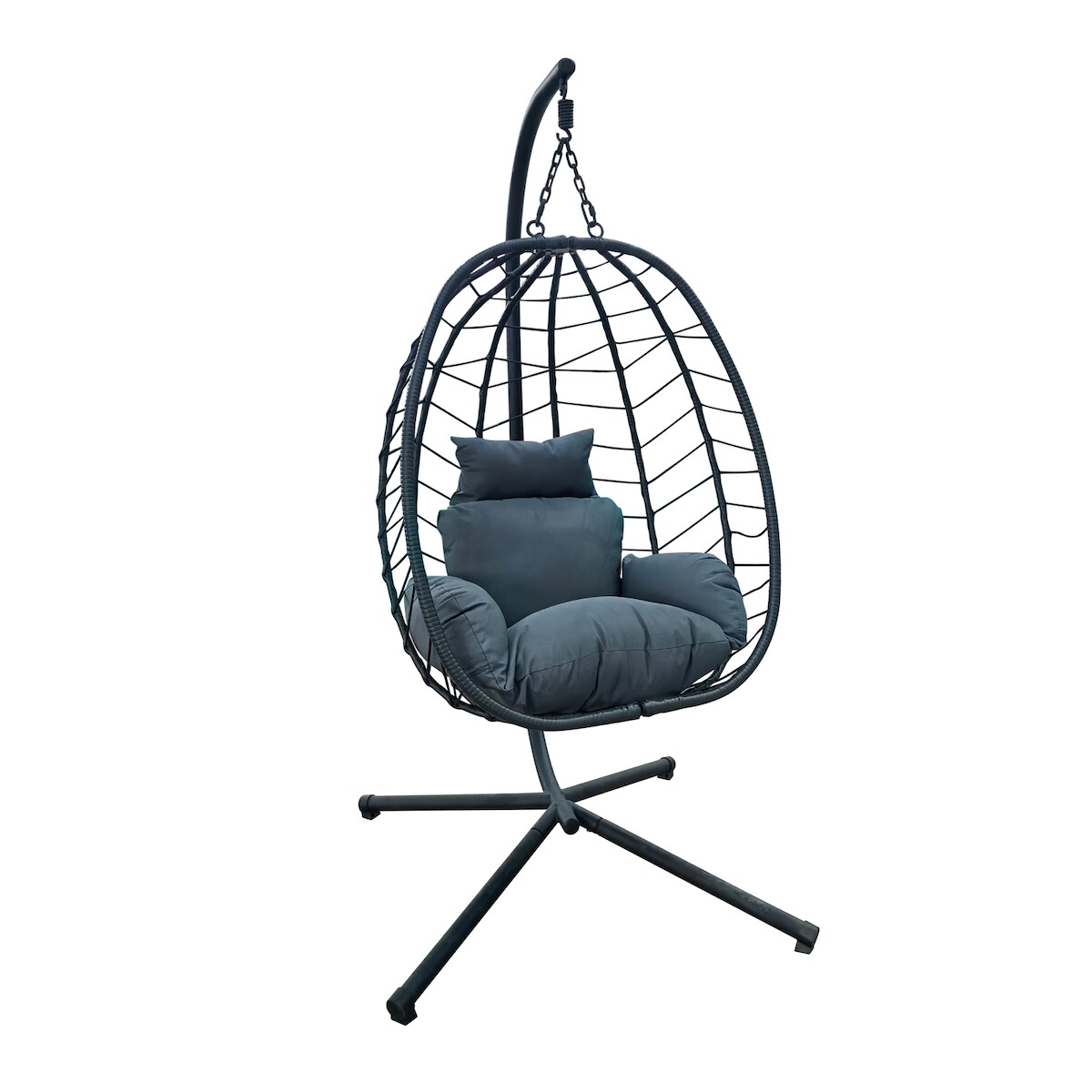 SVITA SHELLY Hängesessel mit Gestell Loungesessel Hängesitz Hängestuhl klappbar Hängekorb Hängeschaukel Outdoorsessel Grau